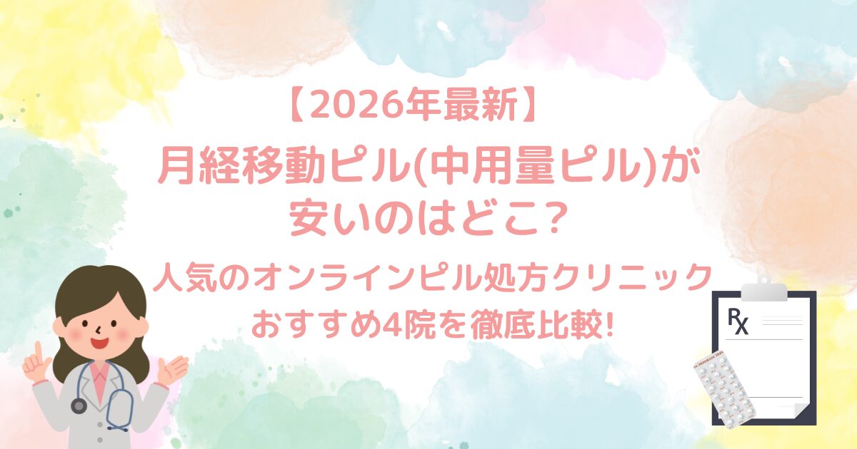 【2026年最新】月経移動ピル(中用量ピル)が安いのはどこ?人気のオンラインピル処方クリニックおすすめ4院を徹底比較!